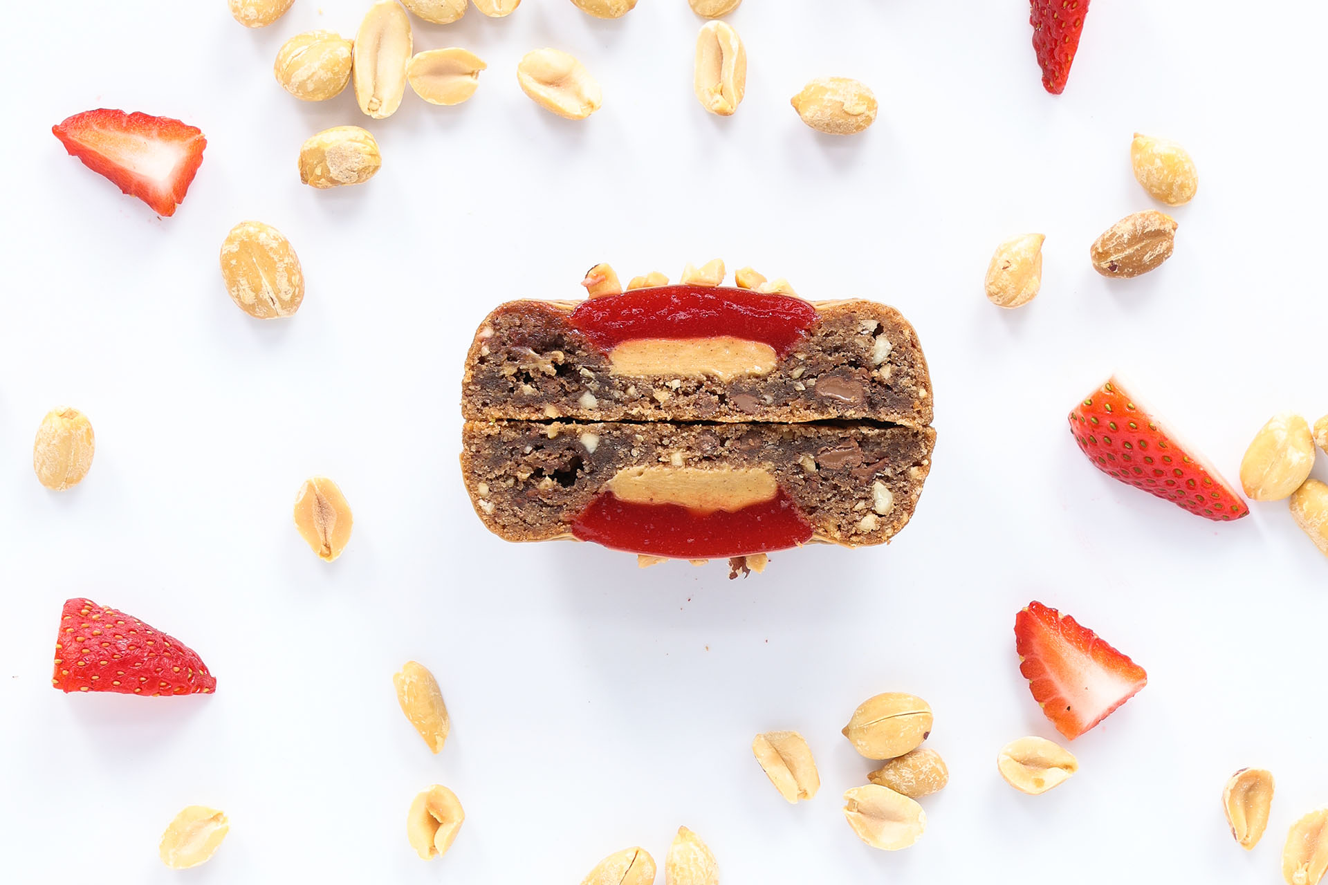 peanuts, peanut butter, strawberry jelly, gold chocolate